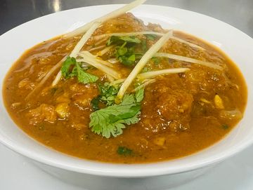 The Dhaba Special - Goat on the bone simmered to cook in a thin sauce of onion, tomato & fresh ground spices from Delhi.