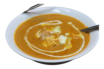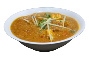 Cottage cheese simmered in a delicate creamy tomato sauce, garnished with ginger & cilantro.