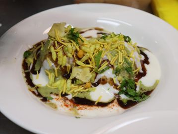 Crispy wafers topped with chickpeas, diced potatoes & yogurt sauce, seasoned with mint and tamarind sauce.