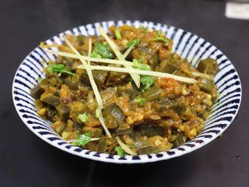 Freshly selected okra sauteed with onions, tomatoes & dash of ginger.