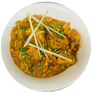 A typical South Asian curry. Chicken stewed in thin onion sauce tossed with cumin and ground spices.