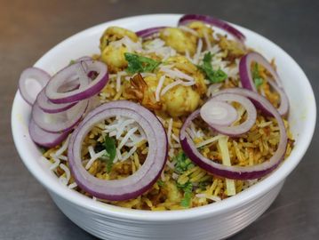 Fragrant basmati rice cooked with mixed vegetables, aromatic spices, and herbs.